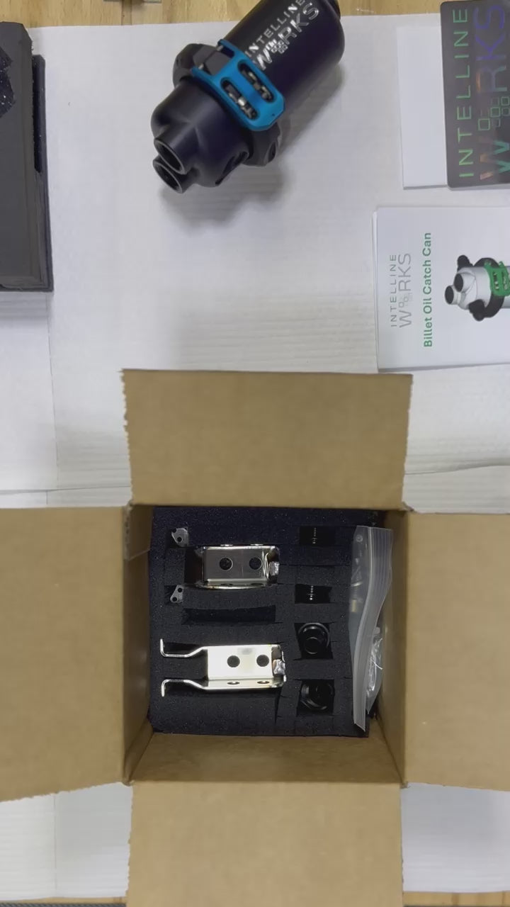 Our catch cans offer easy mounting with multiple options for inlet and outlet ports, all high-quality -8 AN style fittings, and a quick clamping mechanism making it easy to remove and empty the catch can even in engine bays with tight clearance. As well, there is a port option on the bottom of the catch can allowing a valved line to be installed for even easier draining of the catch can.